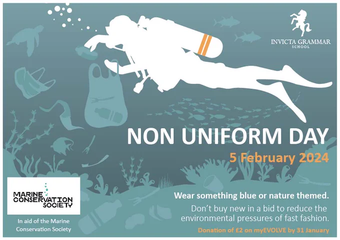 A reminder to students and parents that next Monday, 5 February is a non-uniform day and students are encouraged to wear something blue or nature-themed if they have items in their wardrobe to support and raise awareness for The Marine Conservation Society @mcsuk 💙 pic.twitter.com/bNElZCXC2h